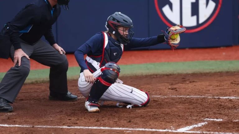 Emilee Boyer in action versus Boise State The Ole Miss softball team saw its early season record dip to .500…