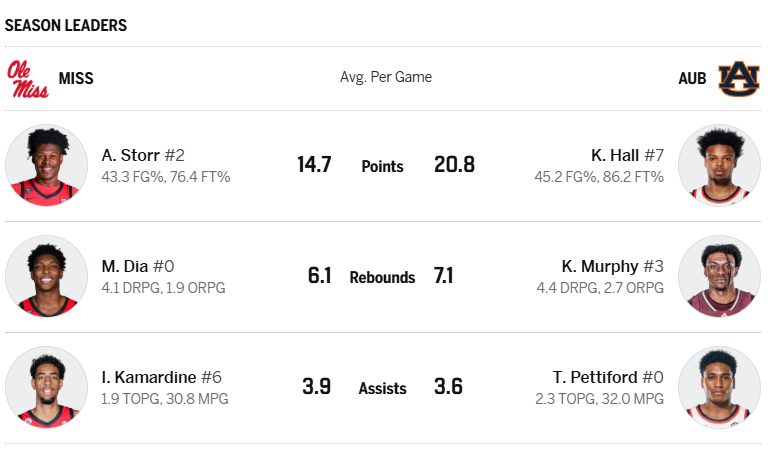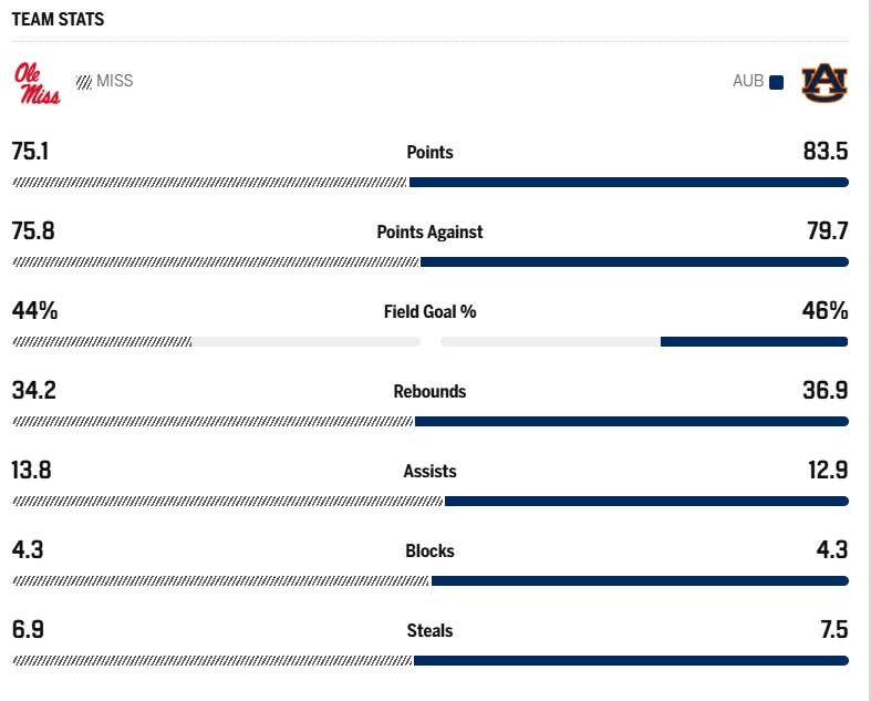 The Rebels have had a rollercoaster ride this season, currently sitting at 3-12 against SEC teams. Their struggles on defense have been evident as they rank seventh in the conference, allowing an average of 75.8 points per game while holding opponents to a shooting percentage of 44.0%. Offensively, Ole Miss averages 75.1 points per game—4.6 points fewer than what Auburn allows its opponents.